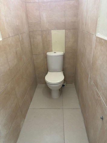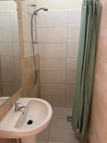 De badkamer is voorzien van een douche en toilet, en biedt al het nodige comfort.